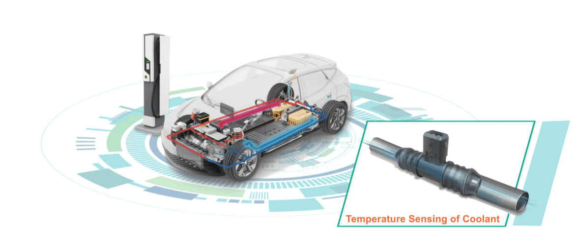對電動車來說,冷卻系統在優化電池和動力系統的效能上,扮演重要角色。由于液體冷卻方案具有高熱容量和導熱性,是目前許多電動車首選的熱管理解決方案。而準確量測冷卻回路中的液體溫度,有助熱管理系統維持電池與其他部件的最佳運作溫度。為滿足電動車對精準量測溫度與節省整車空間的需求,興勤開發了一種緊湊設計的NTC溫度傳感器,提供調節冷卻回路溫度所需的精確數據。